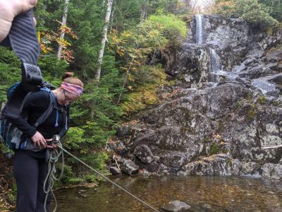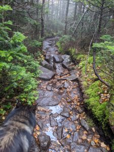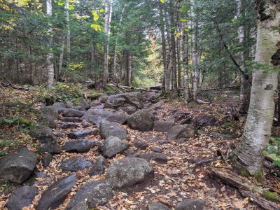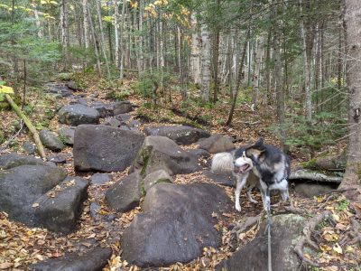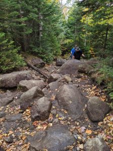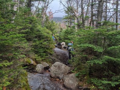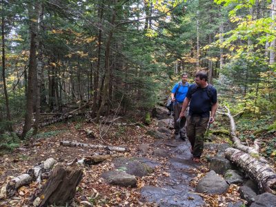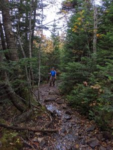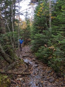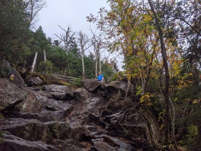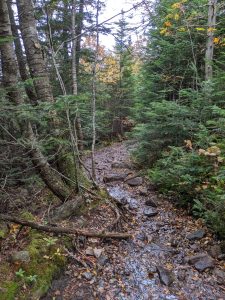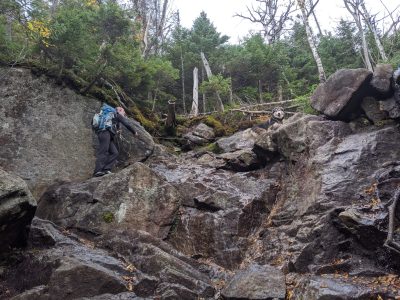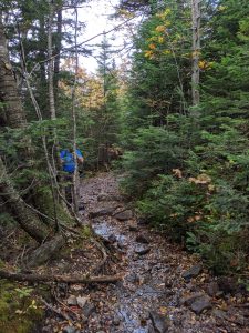 A group trip from Meadows Lane to Adirondack Loj, with a detour up the Whales Tail ski trail. This I do not recommend, the ski trails are extra wet during the fall months. The advantage this does give you is that obtaining drinking water is trivial; assuming you brought along a filter or treatment tools; which on this trip we did not and it did present some challenges on the way back down.
