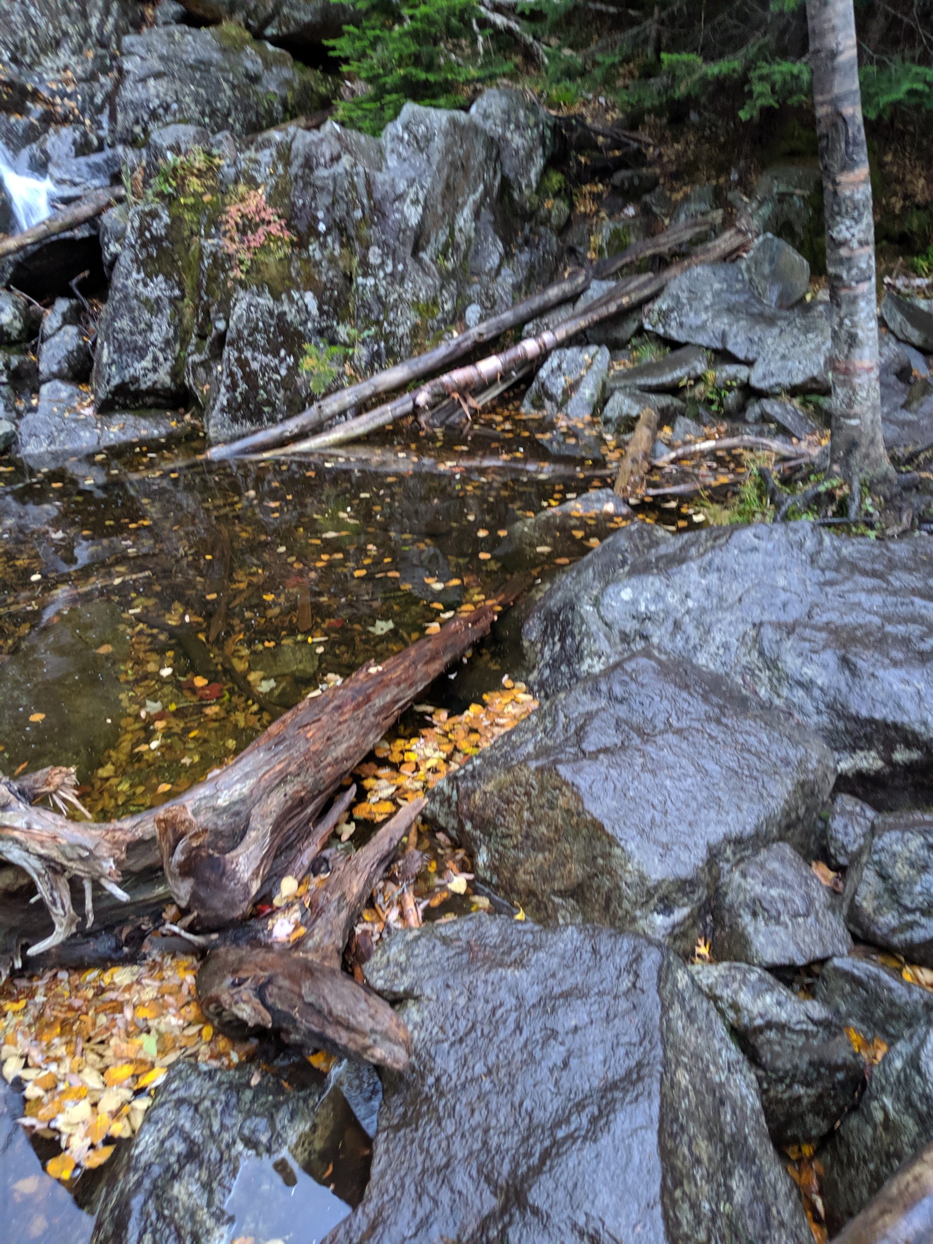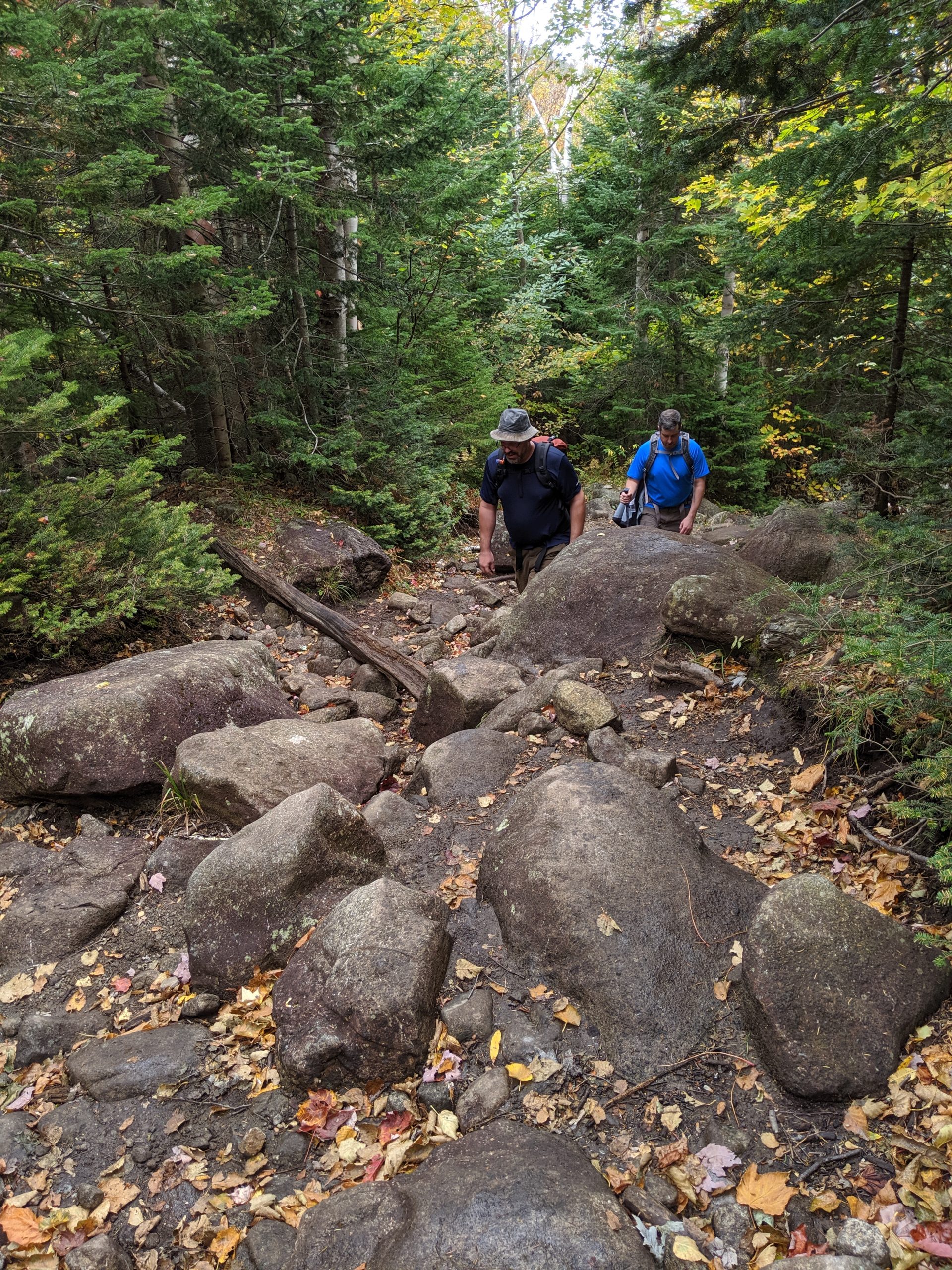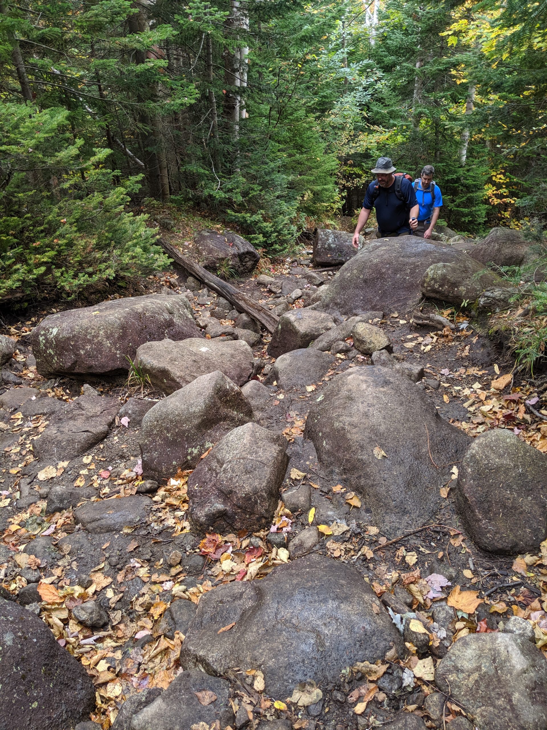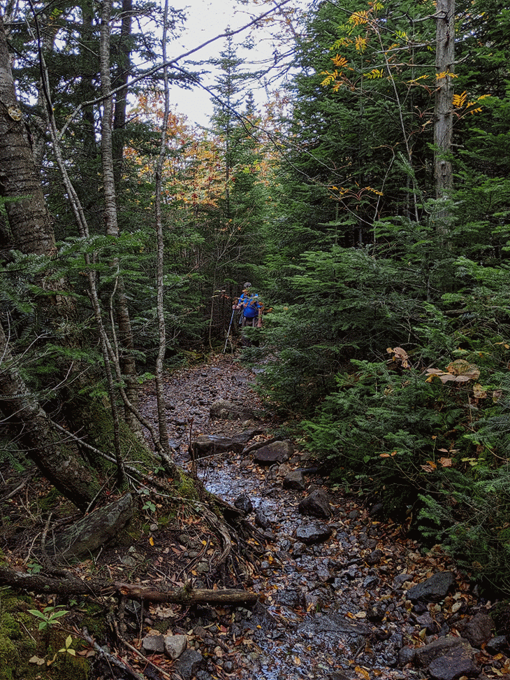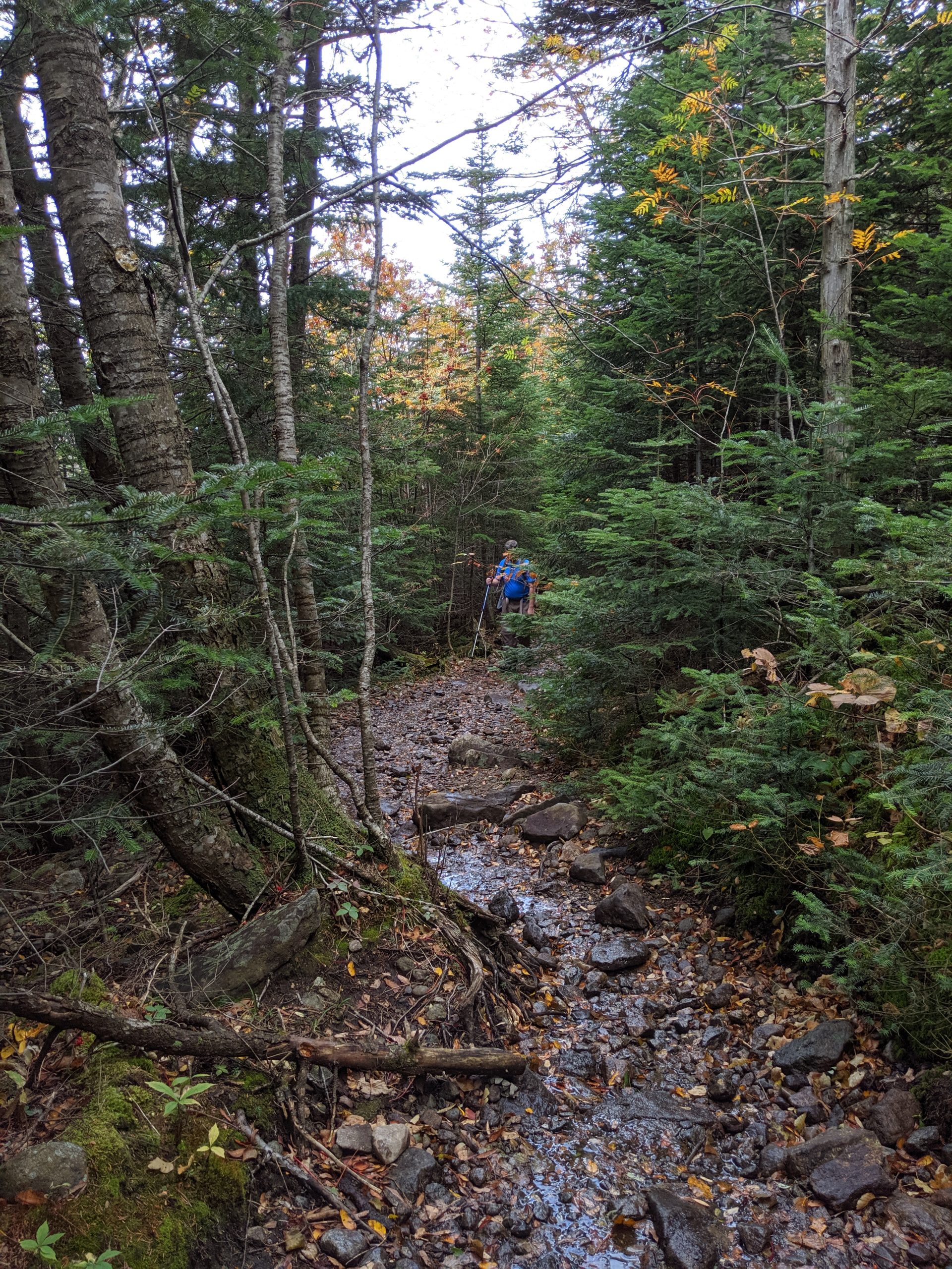 A group trip from Meadows Lane to Adirondack Loj, with a detour up the Whales Tail ski trail. This I do not recommend, the ski trails are extra wet during the fall months. The advantage this does give you is that obtaining drinking water is trivial; assuming you brought along a filter or treatment tools; which on this trip we did not and it did present some challenges on the way back down.