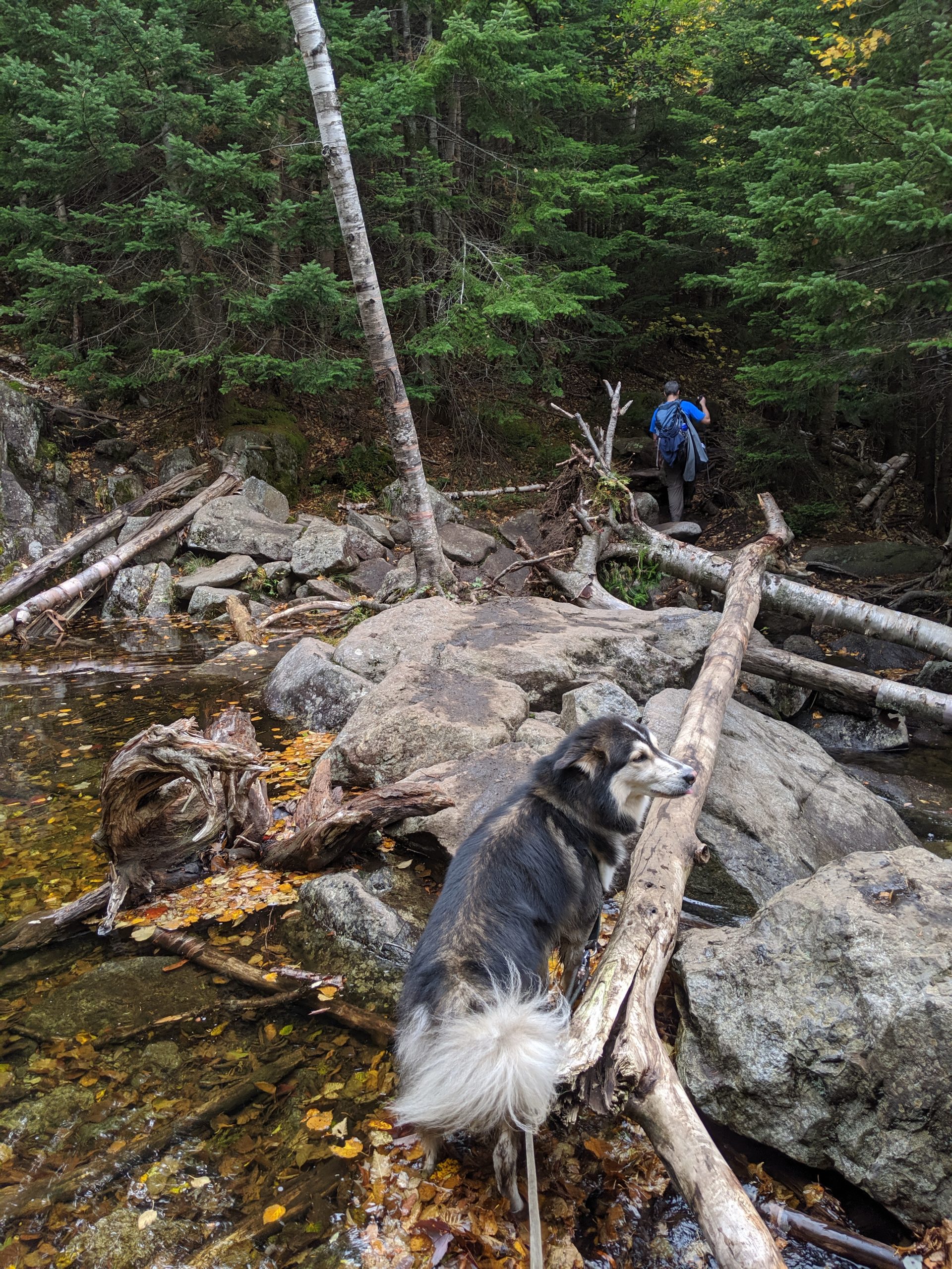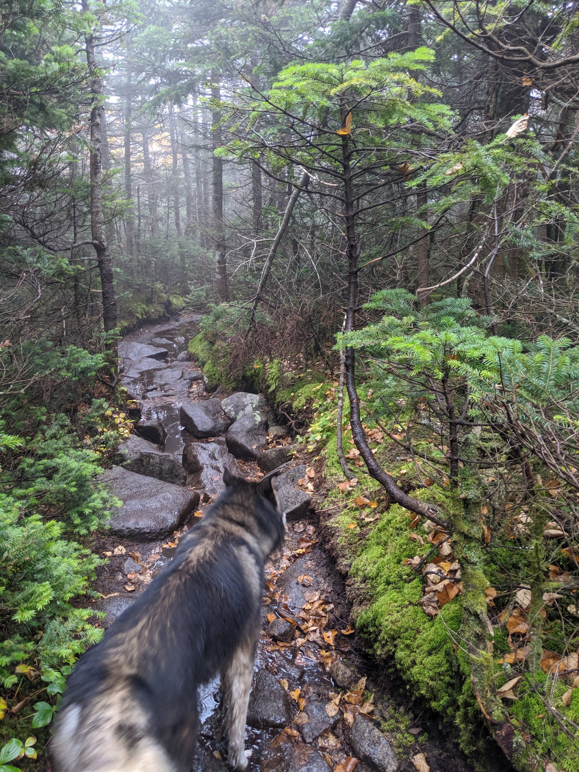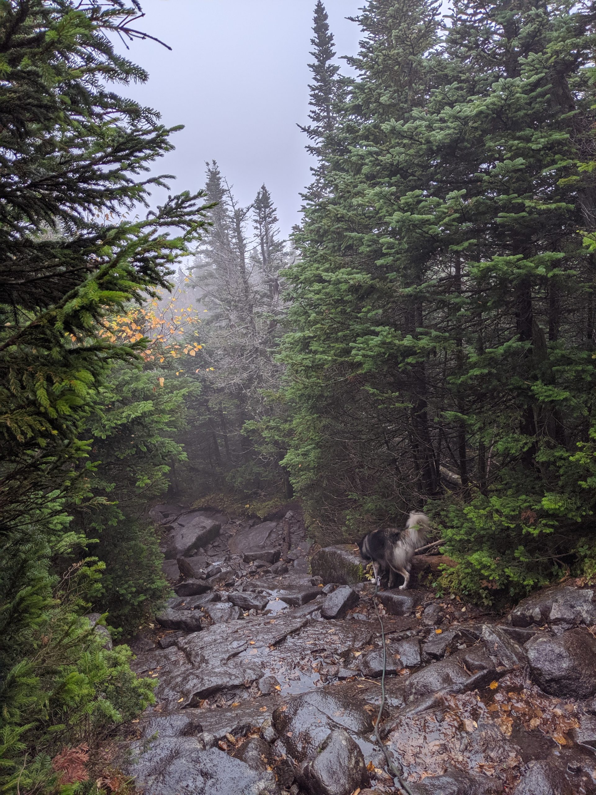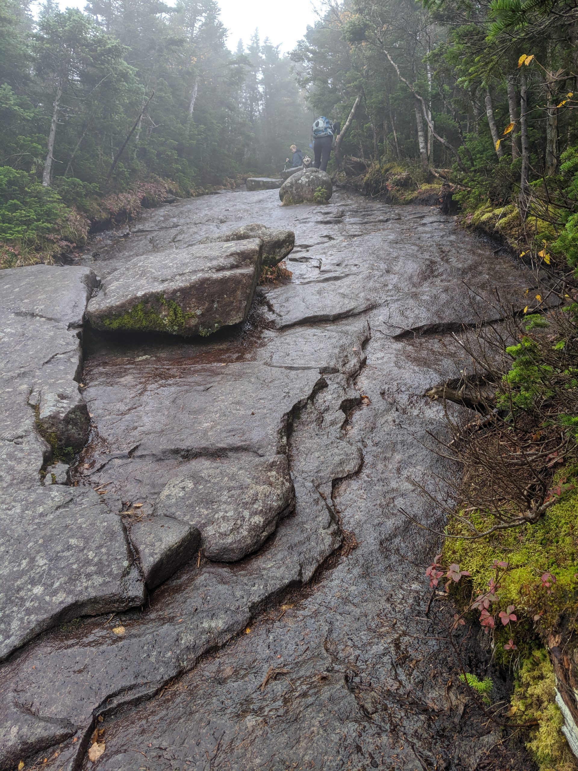 A group trip from Meadows Lane to Adirondack Loj, with a detour up the Whales Tail ski trail. This I do not recommend, the ski trails are extra wet during the fall months. The advantage this does give you is that obtaining drinking water is trivial; assuming you brought along a filter or treatment tools; which on this trip we did not and it did present some challenges on the way back down.
