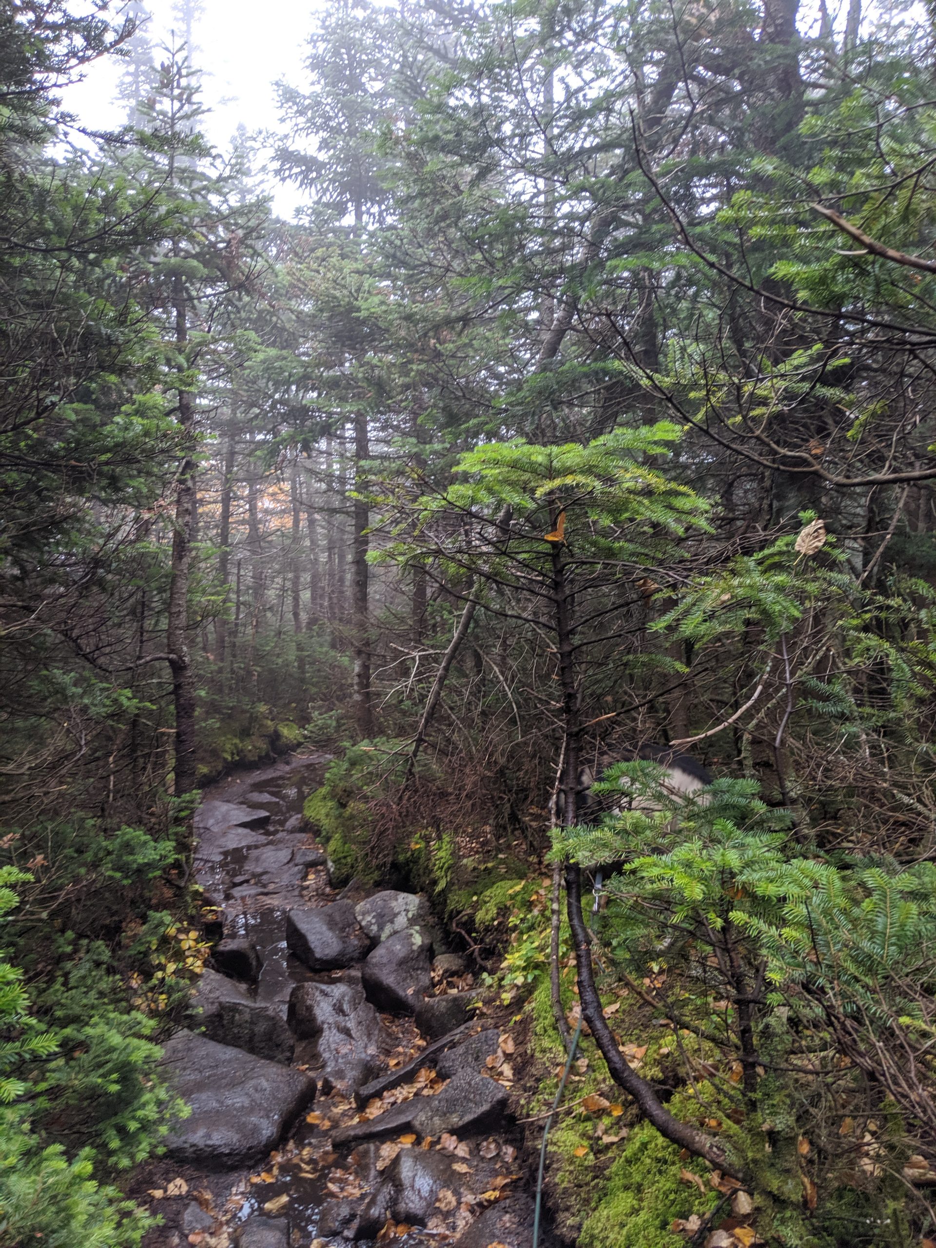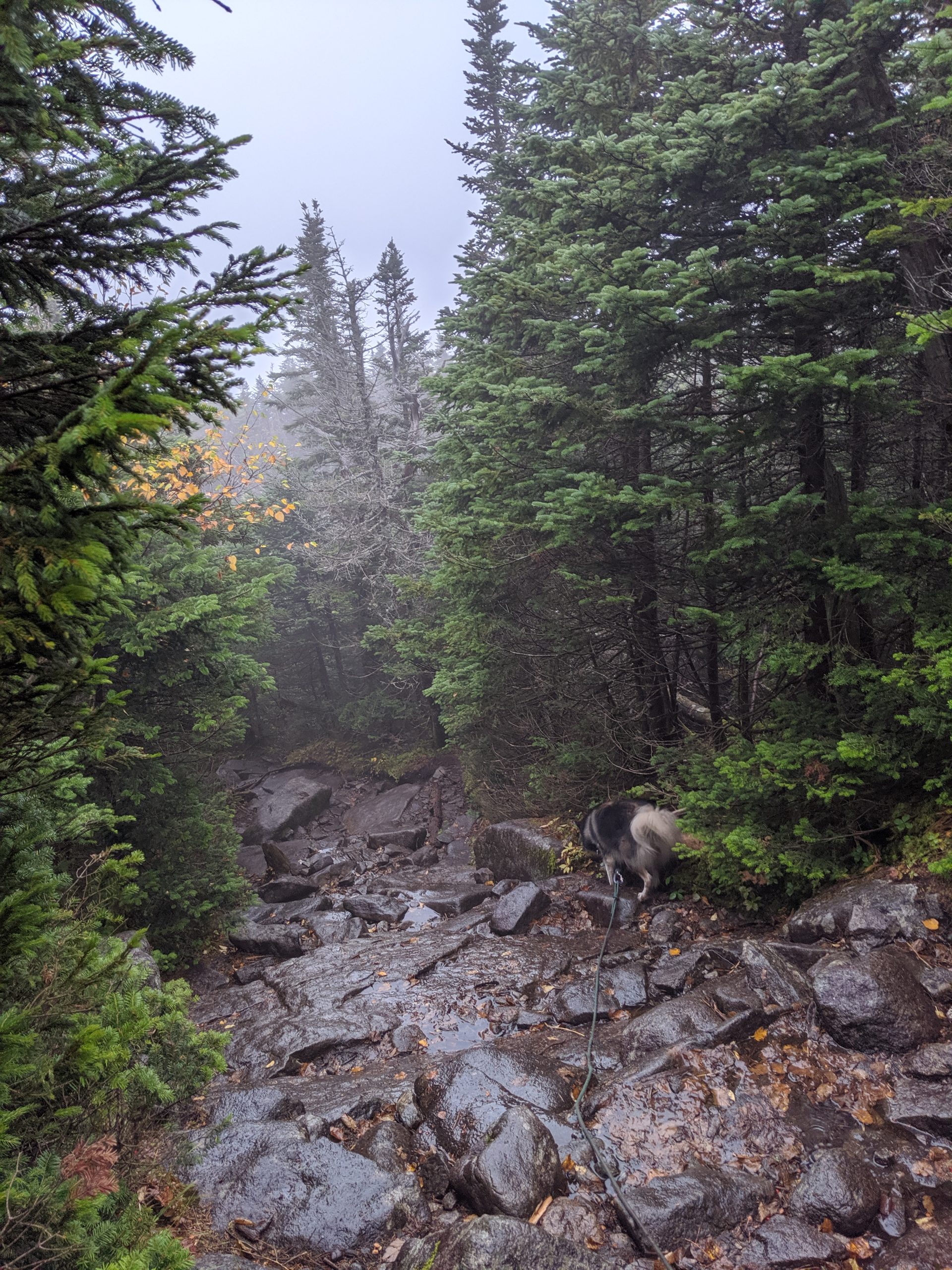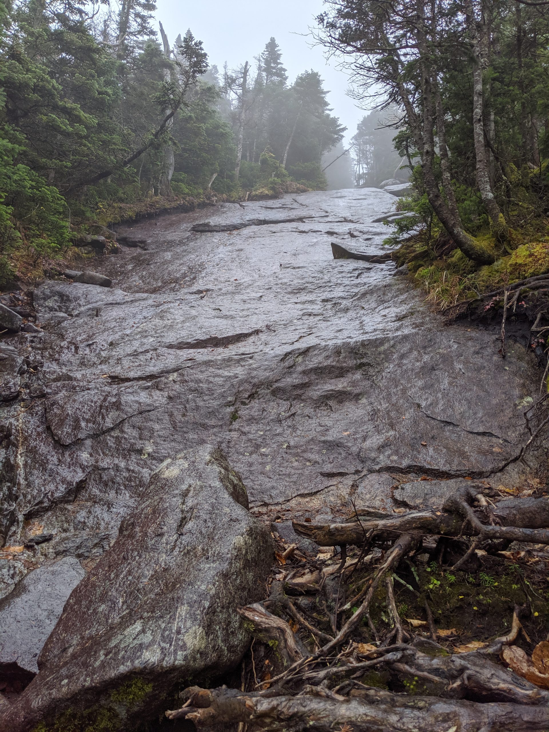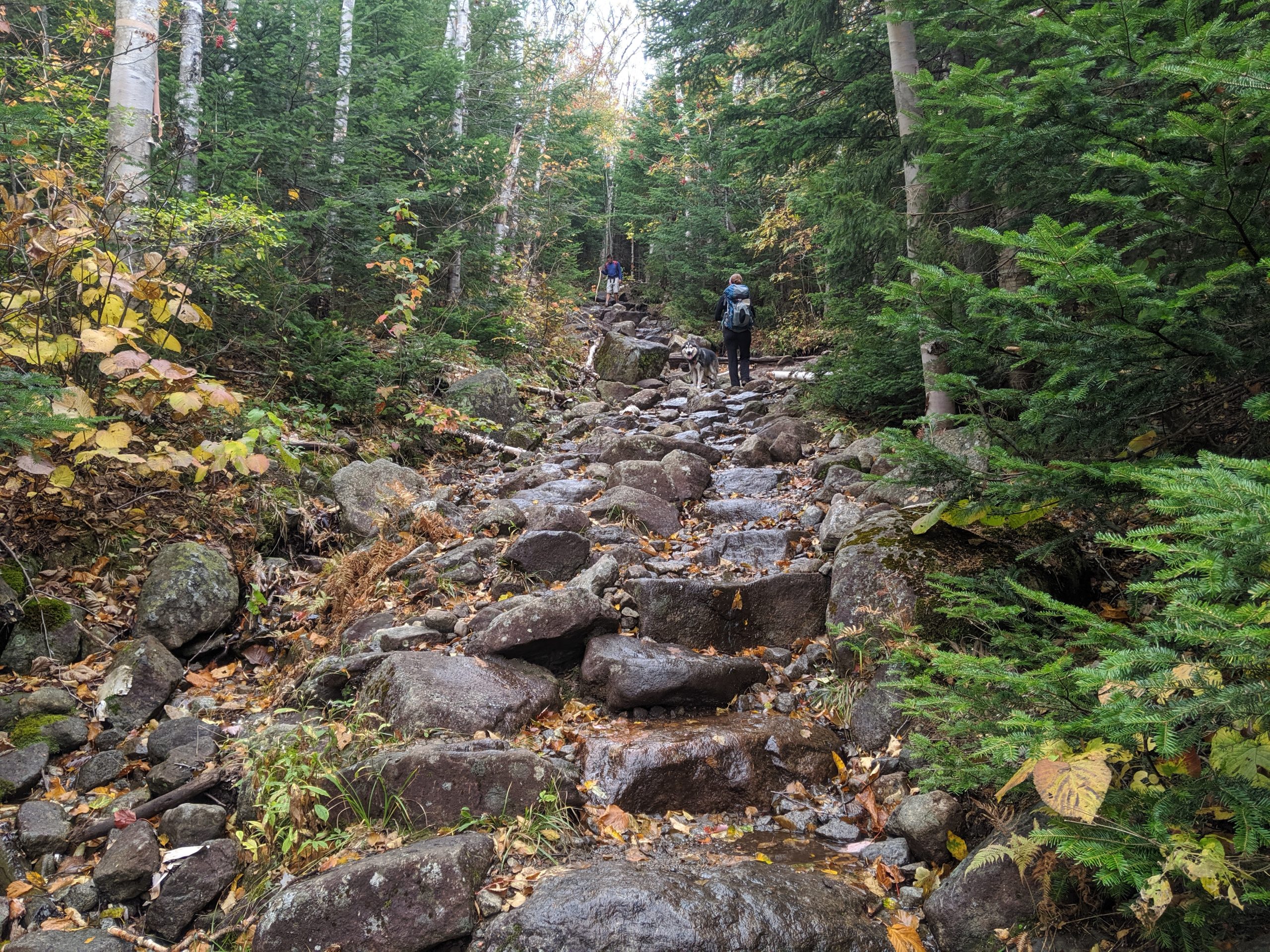 A group trip from Meadows Lane to Adirondack Loj, with a detour up the Whales Tail ski trail. This I do not recommend, the ski trails are extra wet during the fall months. The advantage this does give you is that obtaining drinking water is trivial; assuming you brought along a filter or treatment tools; which on this trip we did not and it did present some challenges on the way back down.