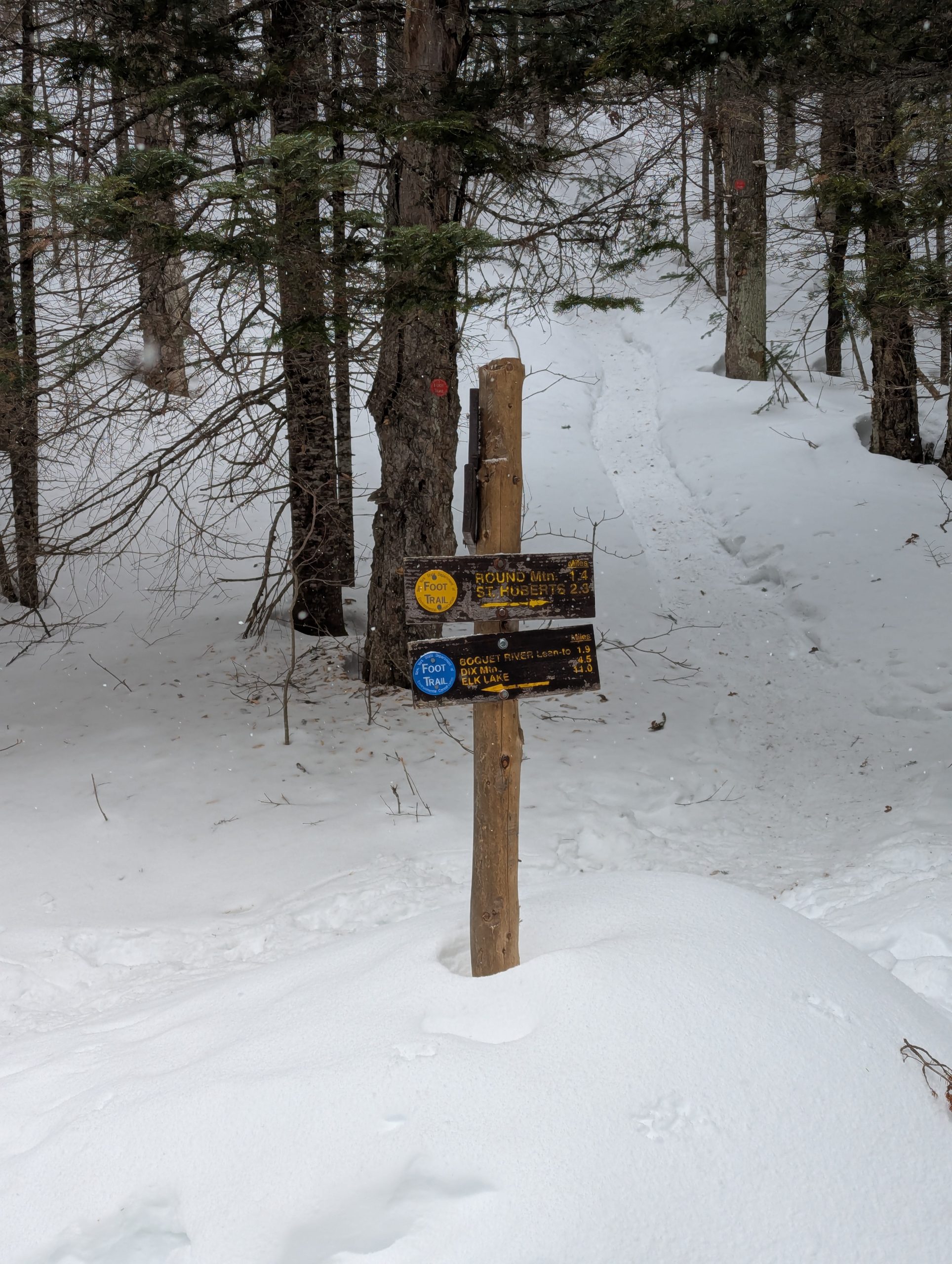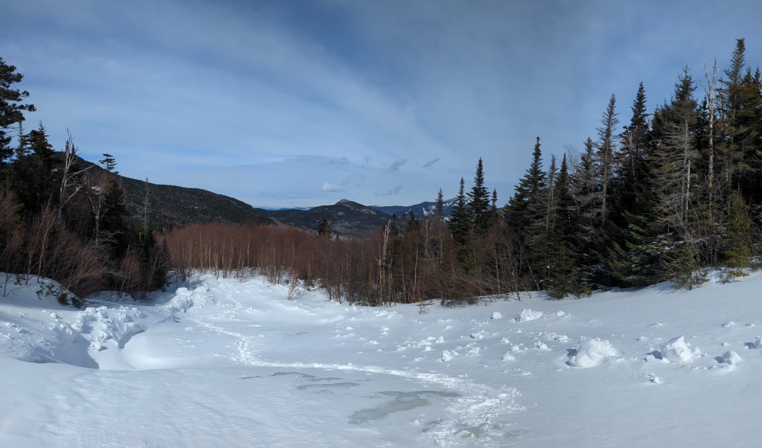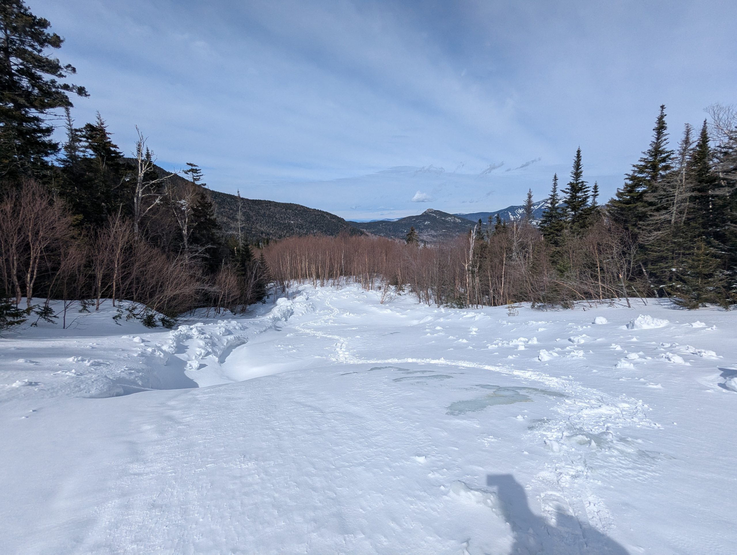 This is always a long one, from Round Pond trailhead. This one is in the High Peaks Region so snowshoes are absolutely required by law; you’ll see many who ignore this… it ruins the trail for anyone who’s skiing and makes snowshoeing dangerous so please don’t be like them.