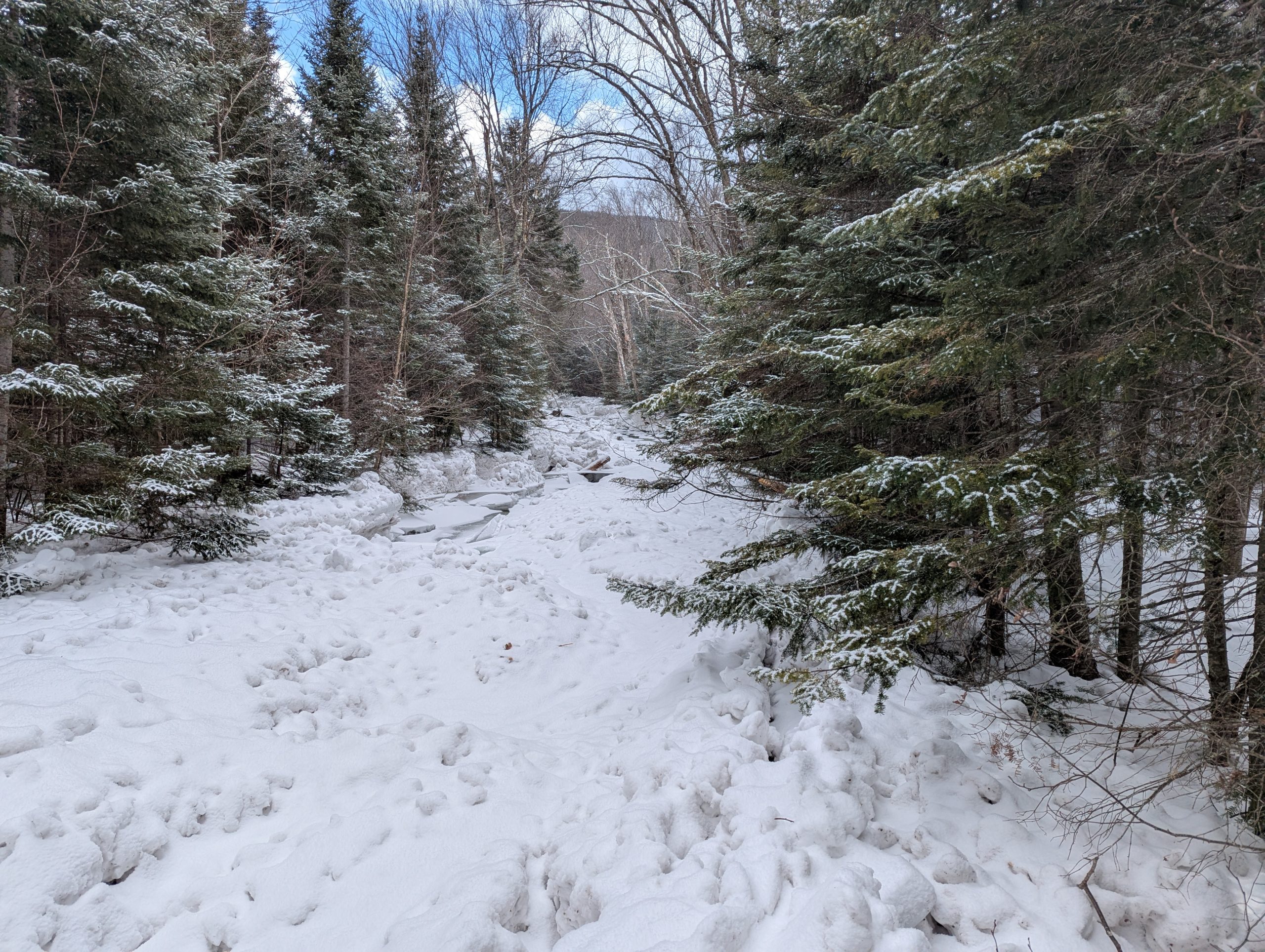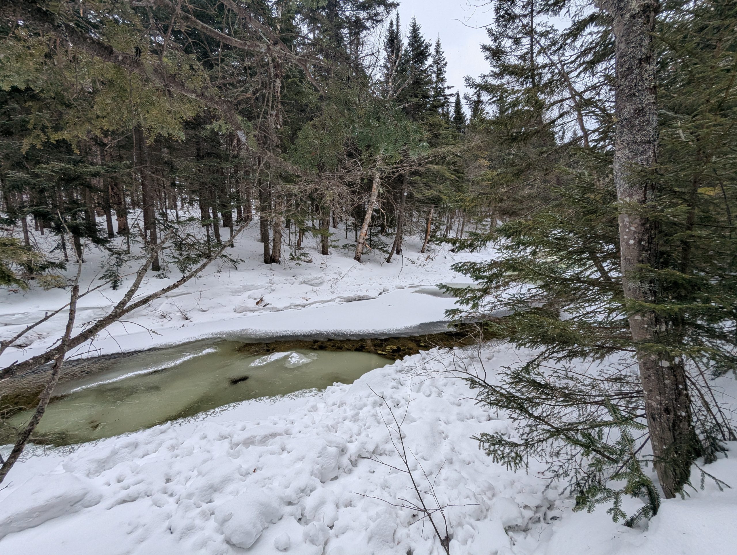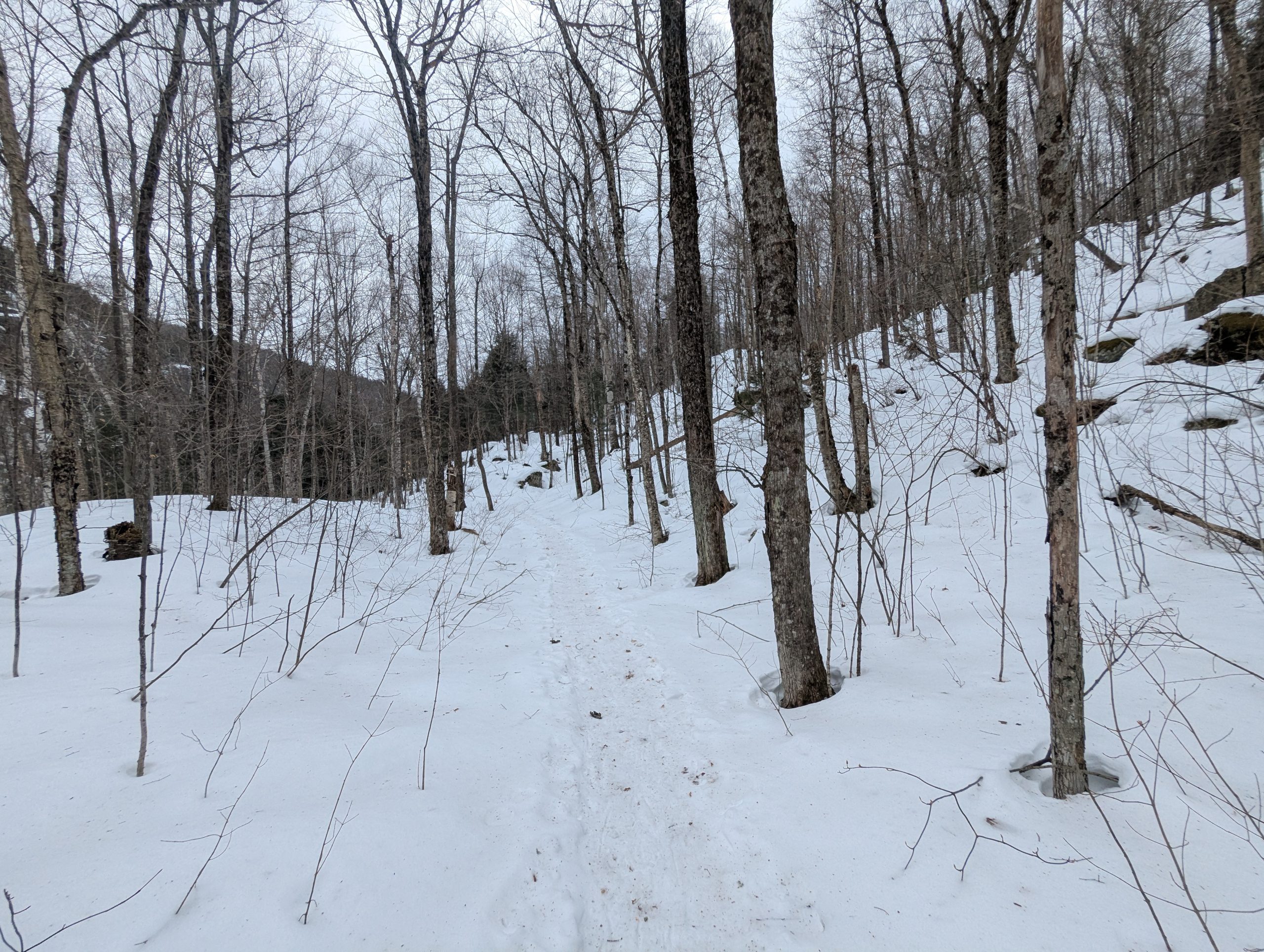 This is always a long one, from Round Pond trailhead. This one is in the High Peaks Region so snowshoes are absolutely required by law; you’ll see many who ignore this… it ruins the trail for anyone who’s skiing and makes snowshoeing dangerous so please don’t be like them.