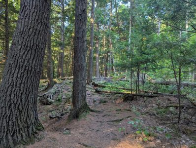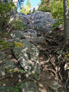 It’s a very clean trail, but it did get a bit muddy at the bottom of Bald Peak as you walk around the pond. A lot of clean, bare rock.
