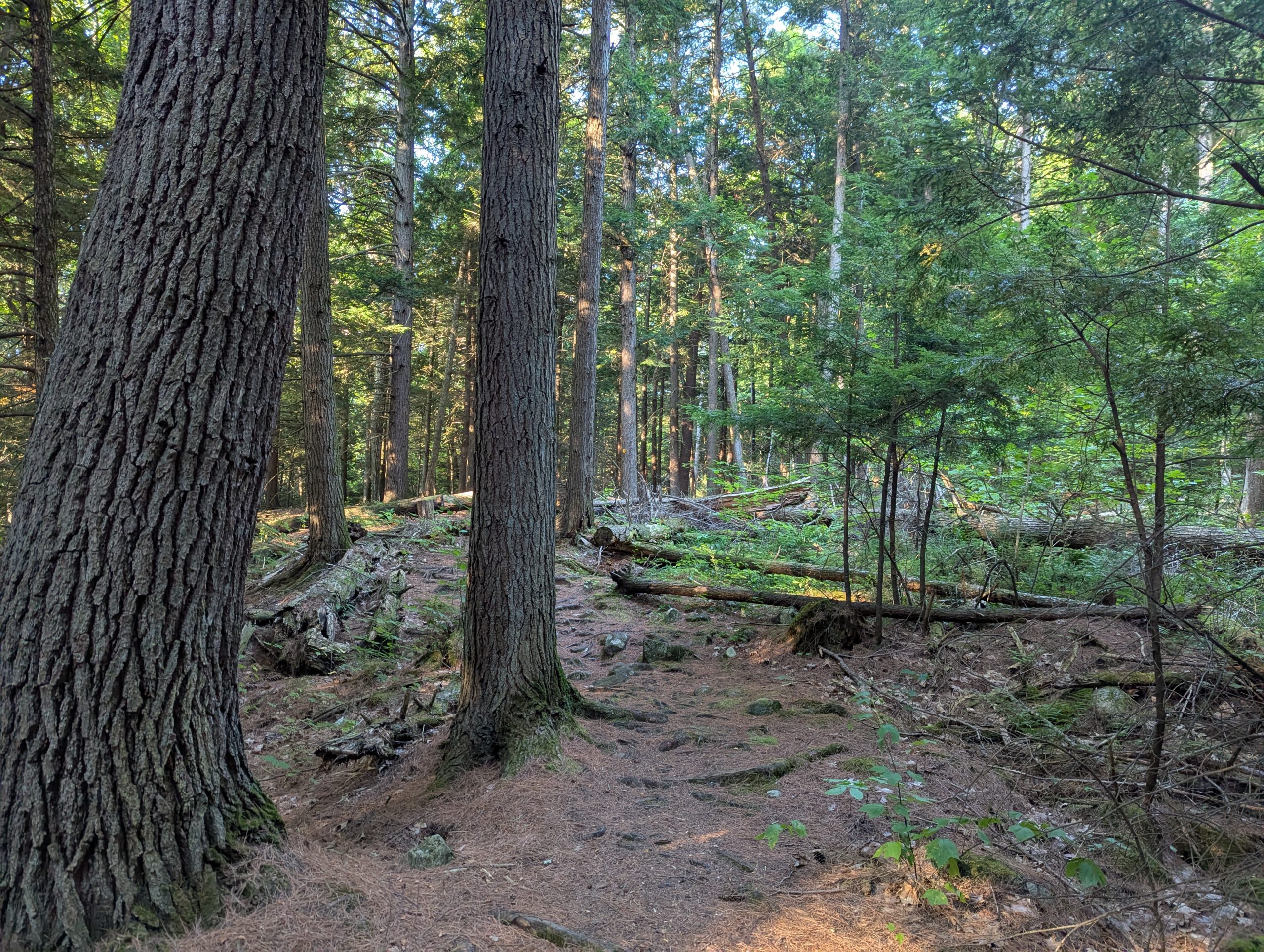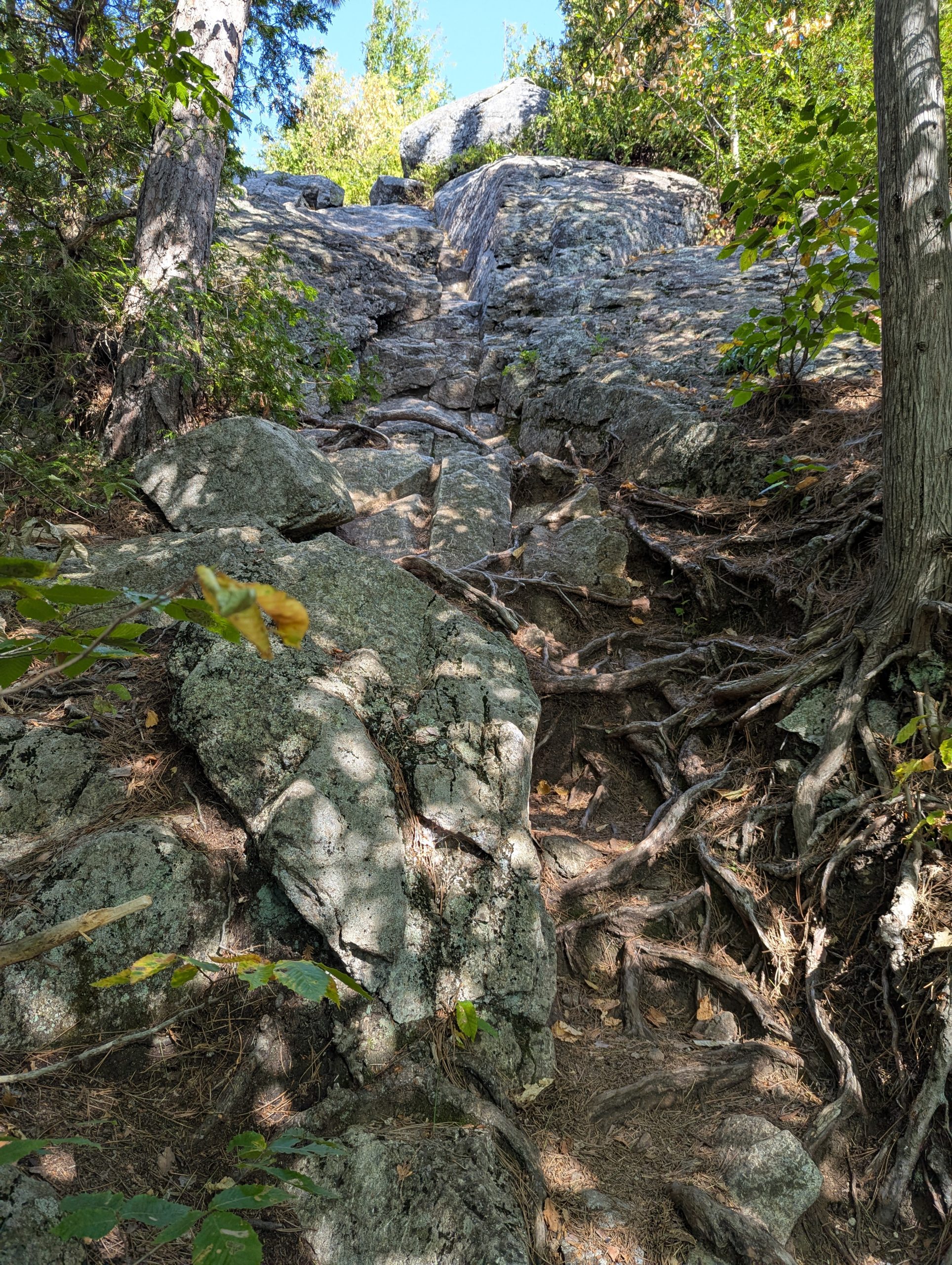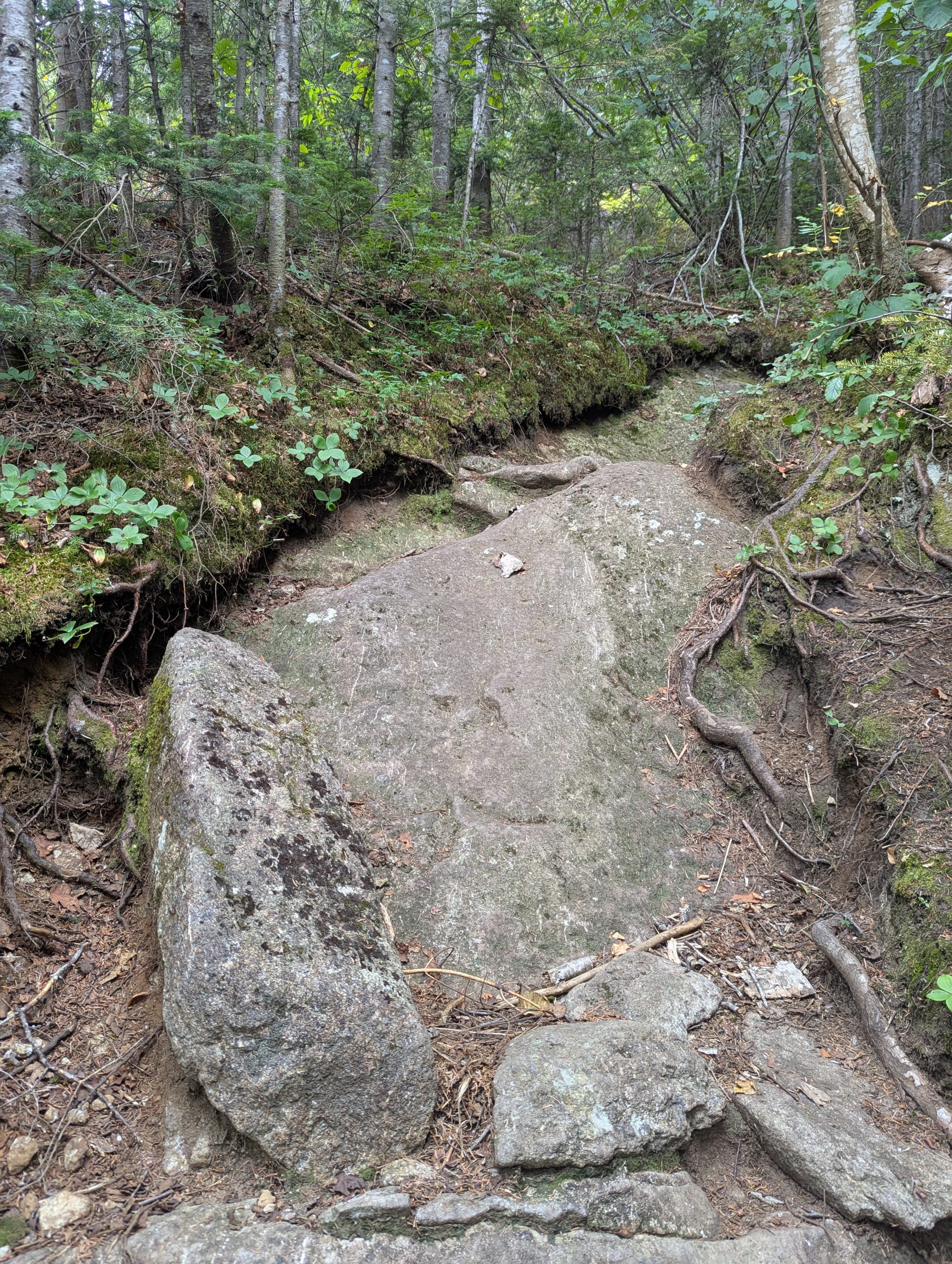 It’s a very clean trail, but it did get a bit muddy at the bottom of Bald Peak as you walk around the pond. A lot of clean, bare rock.