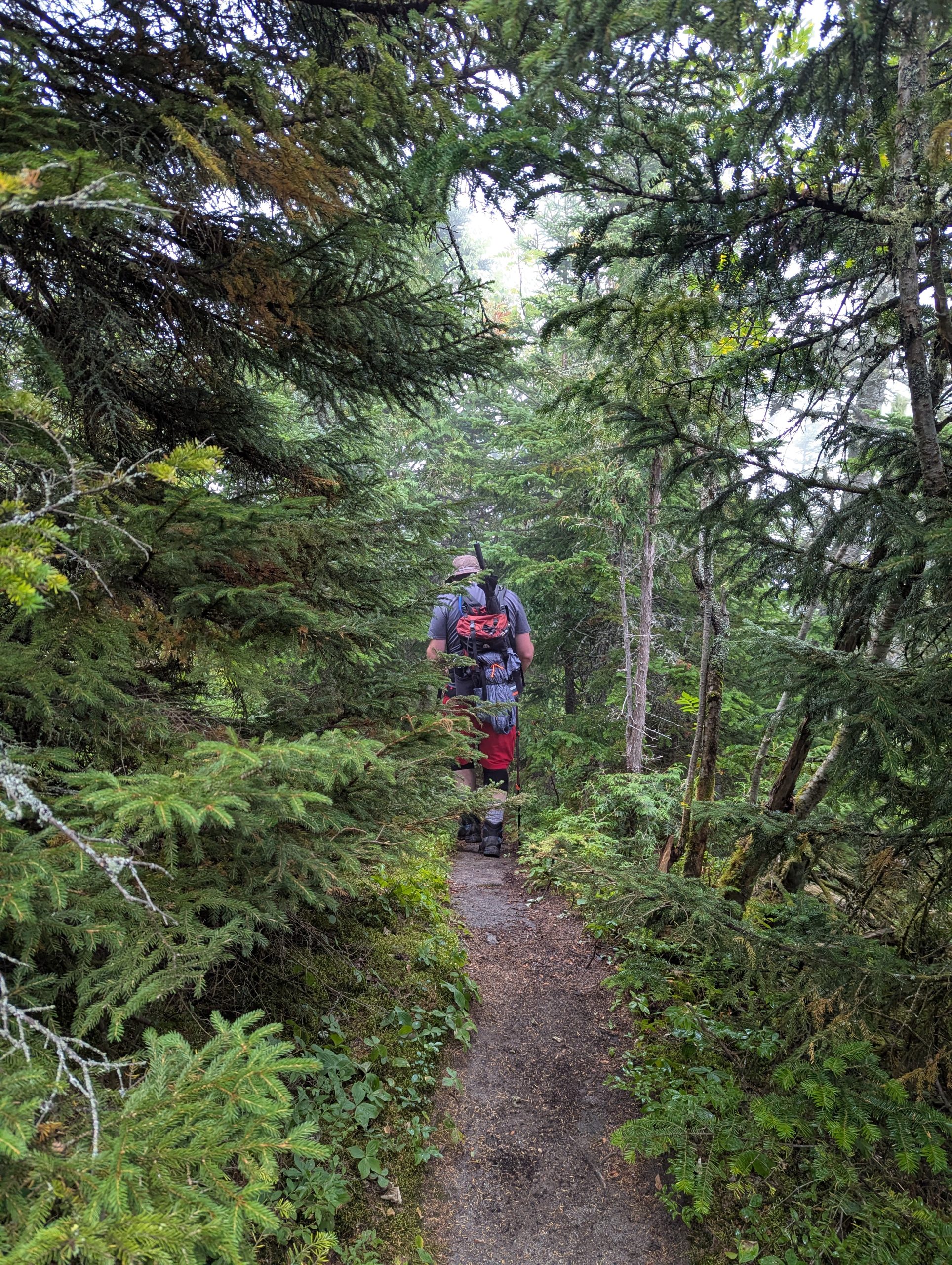 It took a lot of emotional and physical endurance with steep inclines. The rain clouds started moving in as we were coming down Bald Peak and starting the climb up RRP. It got very cloudy and misty as we reached the endless false summits and it started raining not long before we reached the summit. Thankfully, not enough rain to make things too unpleasant or slippery.