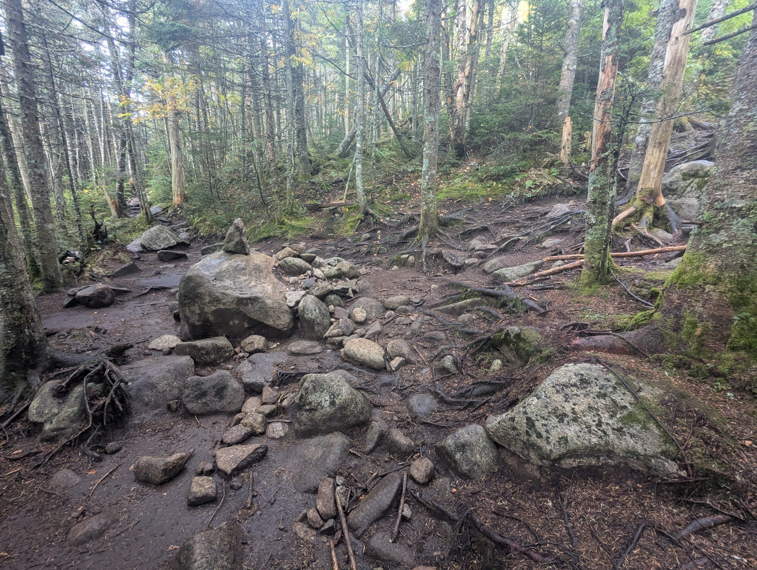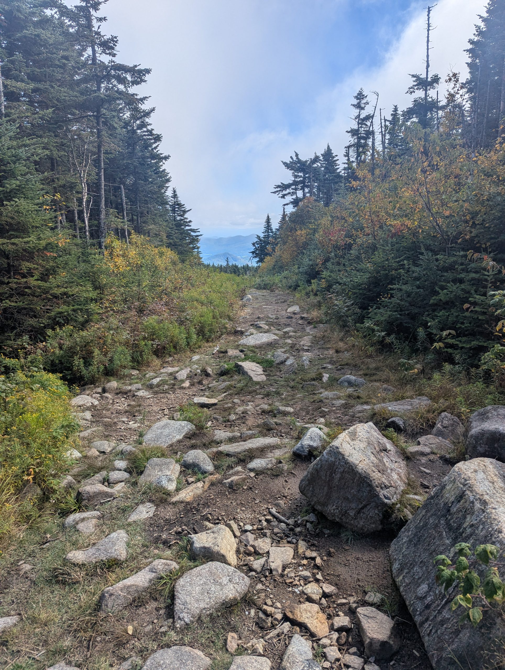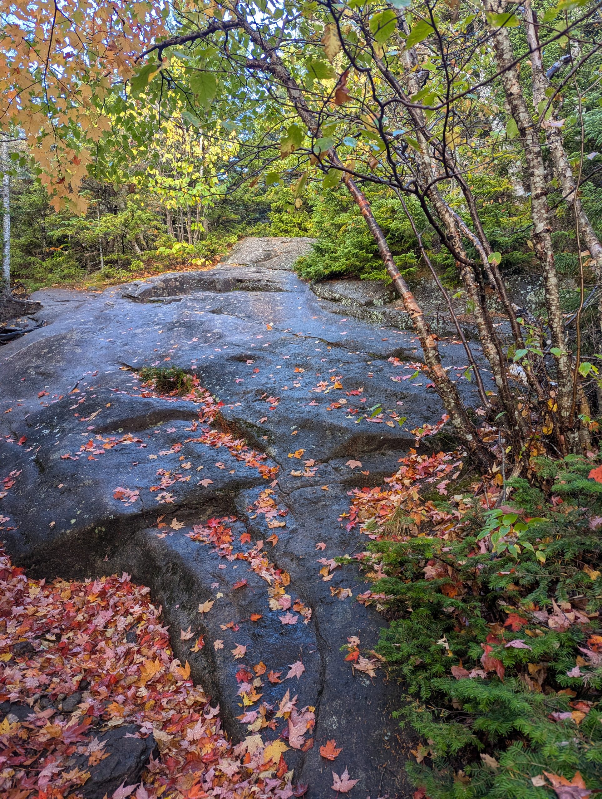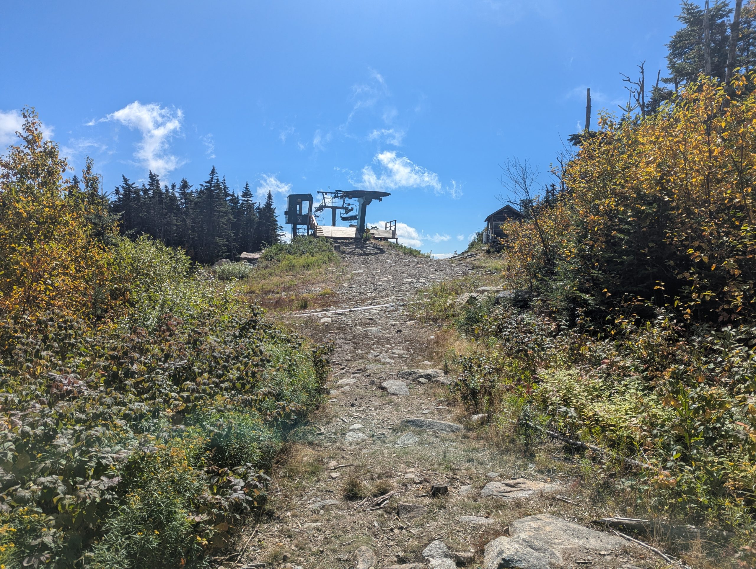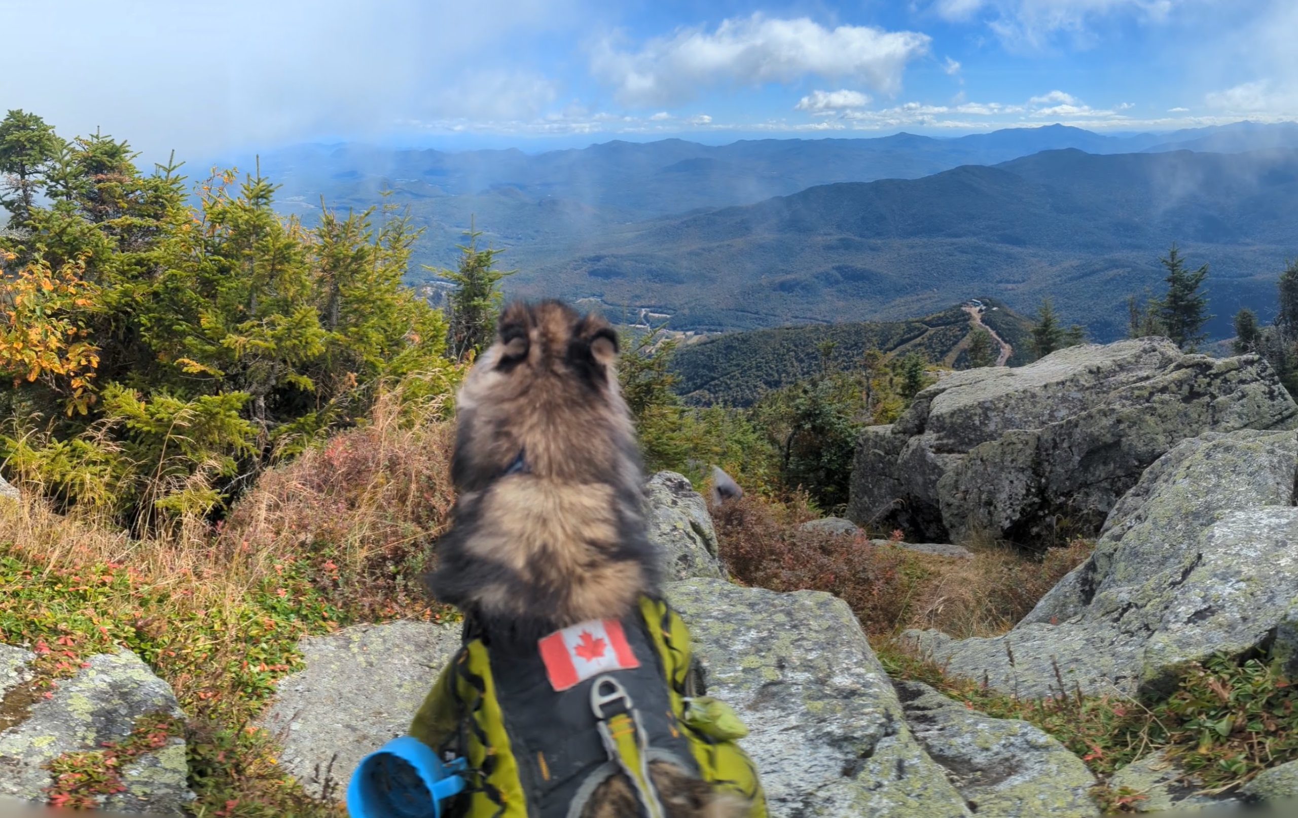 Once back at the junction we turned uphill towards Whiteface, had an interesting time getting around some blow down but soon enough we began crossing cut areas where the resort has cut up and across the trail, then passed the top end of one of the chair lifts before heading back into stacked boulders. Jasper isn’t a fan of this kind of terrain but with some boosts he made it through until we passed under the embankment for the toll road. We decided to take the road around the final section.