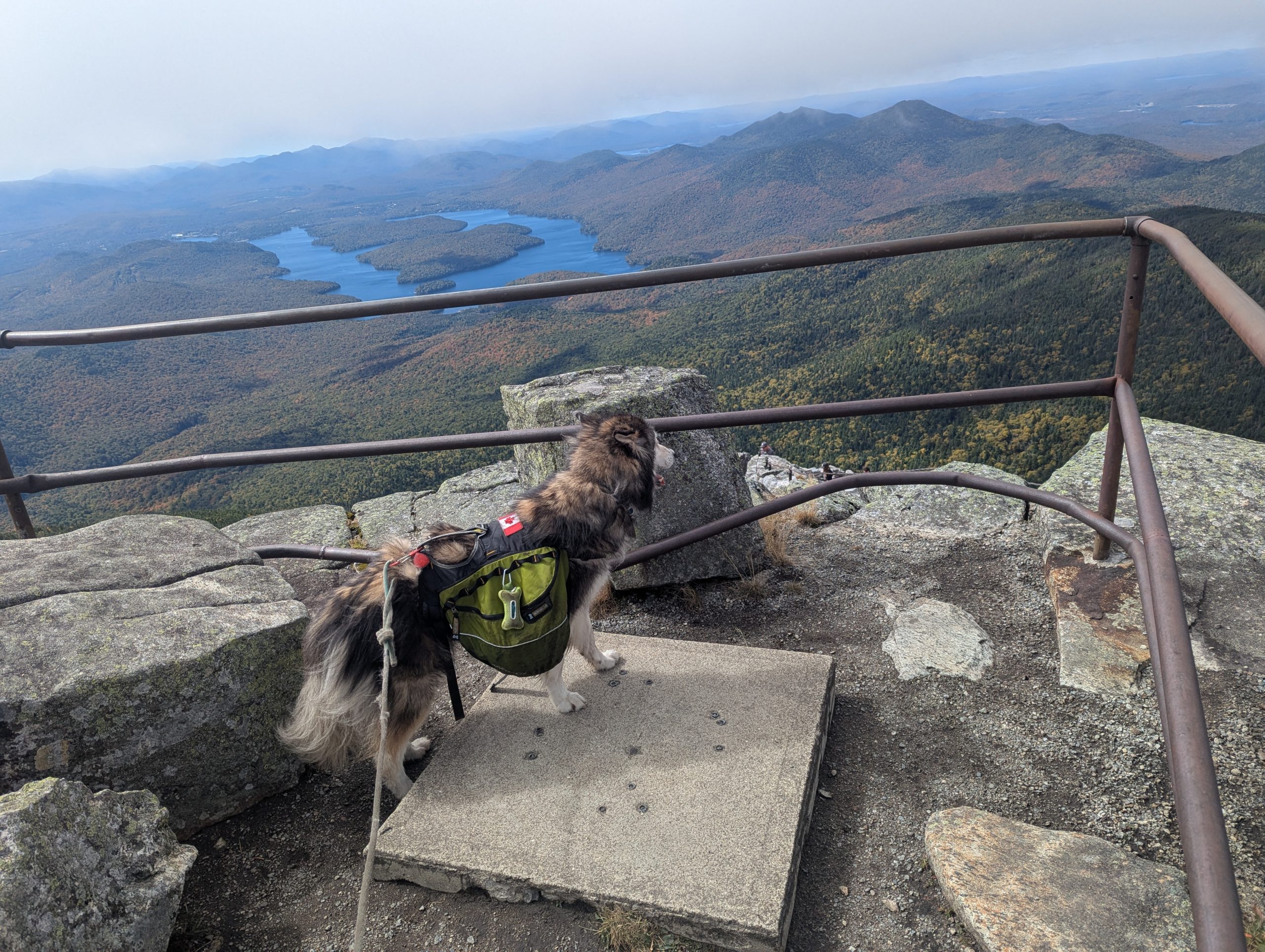 Once at the castle we took the stairs up the ridge to the summit where Jasper found a nice clear spot and sat for about twenty minutes just looking out over the mountains while mingling with all the others on the summit. The toll road means that this is by far the most crowded in the Adirondacks.